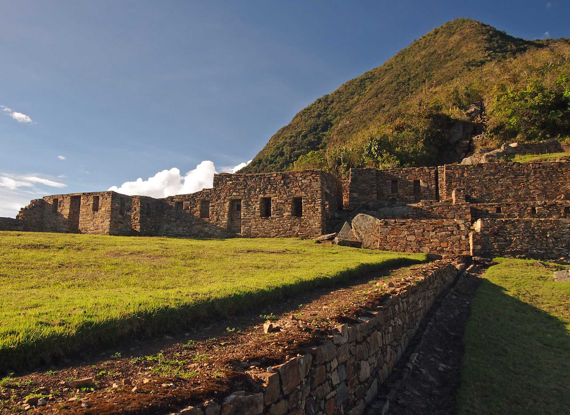 Choquequirao trek 5 dias 4 noches es la version larga y suave, es muy buena para las personas que estan buscando una aventura a su propio ritmo, en realidad esta opcion le proporciona un dia completo en el destino mas espectacular nominado numero uno en la mejor lista de Regiones Top en Viajes 2017 por Lonely planet, así Choquequirao contiene estatuas de piedra únicas de llamas, que se han criado en los Andes durante cinco milenios, para verlos es uno de los espectáculos más maravillosos que podemos tener, Choquequirao se encuentra en la silla de montar de una alta cresta andina, 3000 m./sobre el nivel del mar y a 1.500 m. sobre las rugientes aguas del río Apurímac. Rodeada de espectaculares picos nevados y flanqueada por laderas en picado densamente arboladas, la ciudad es un inspirador ejemplo de centro ceremonial inca de élite, dedicado al culto de los dioses de la montaña, el río y los elementos de la naturaleza, Hoy en día todavía es posible ver el espectacular rey de los Andes (Cóndor) volando alrededor de la ciudad de Choquequirao por las tardes o por las mañanas, donde se puede vivir su fantasía de Indiana Jones, Es un viaje difícil, pero increíble experiencia para bajar y subir a las profundidades del Cañón del Apurimac y luego hasta el sitio en las nubes …